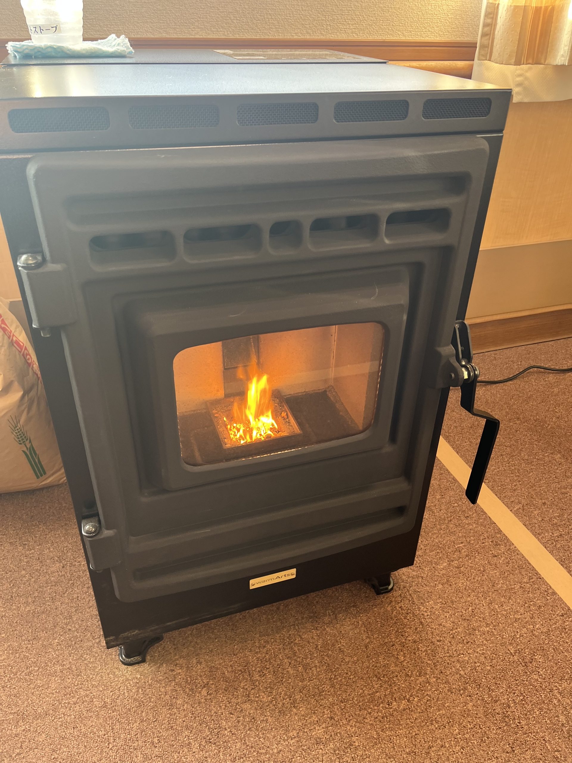 お年寄りにとって火を眺めながらひと時を過ごしていただき、心も体も温まるペレットストーブの使用を開始しました。また脱炭酸効果もありご家族様からもご好評です。